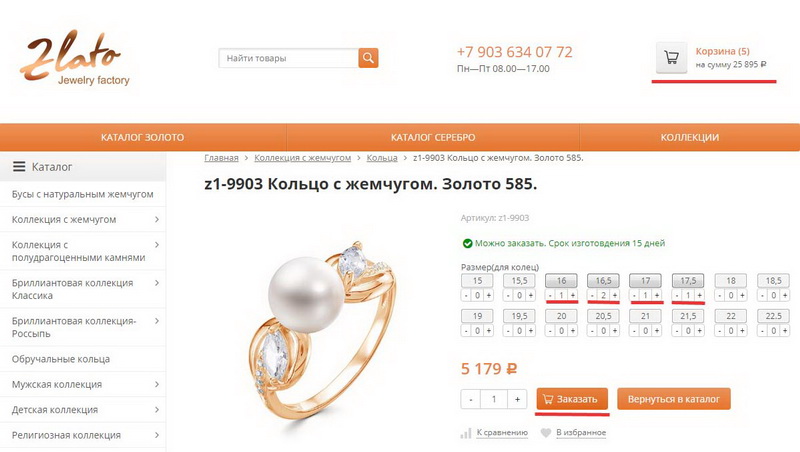 Нажмите левой кнопкой мыши по украшению, которое хотите добавить в заказ, откроется карточка товара с выбором характеристик (размеры, вставки..) и количества, как на фото ниже.