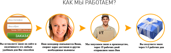 Все изделия на сайте изготавливаются под заказ. Срок изготовления 15 рабочих дней.